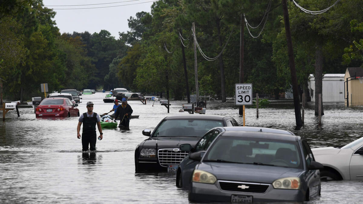 Video: An elderly man in Houston being swept away in his SUV. But about 20 people formed a HUMAN CHAIN to get to him. They got him to a hospital where he was reunited with his son.