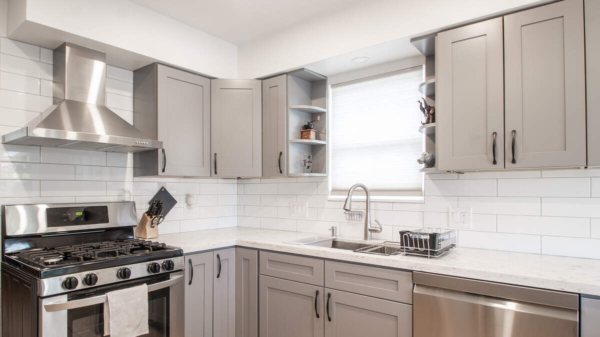 Spencer asked Megan what she puts in the cabinets above the fridge - Megan said she can't reach so nothing goes up there.